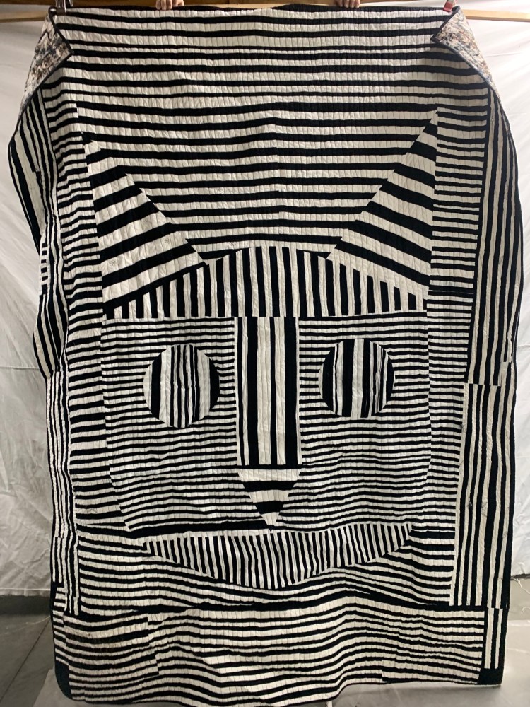 My favorite! Half way through I thought that maybe I should have bought black and white striped fabric, but As I start to play with varying the stripe size, I like the irregular lines.