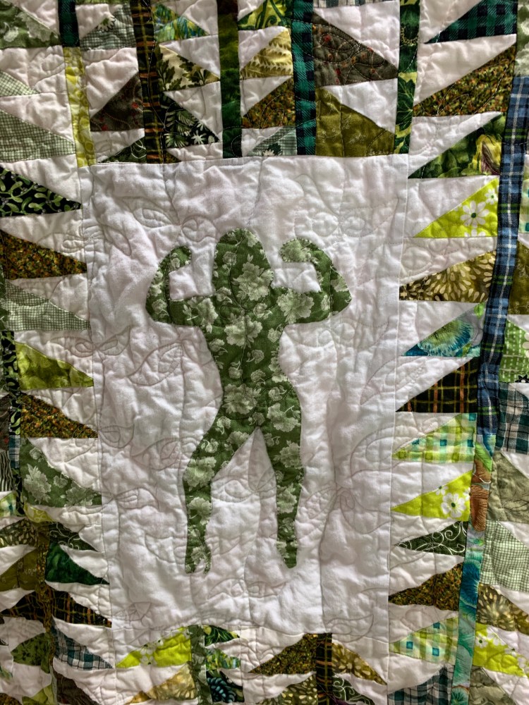 There is an old song called Babes in the Woods. The song is about babies getting lost in the Woods. The song changed my vision off this quilt as I was working on it.
