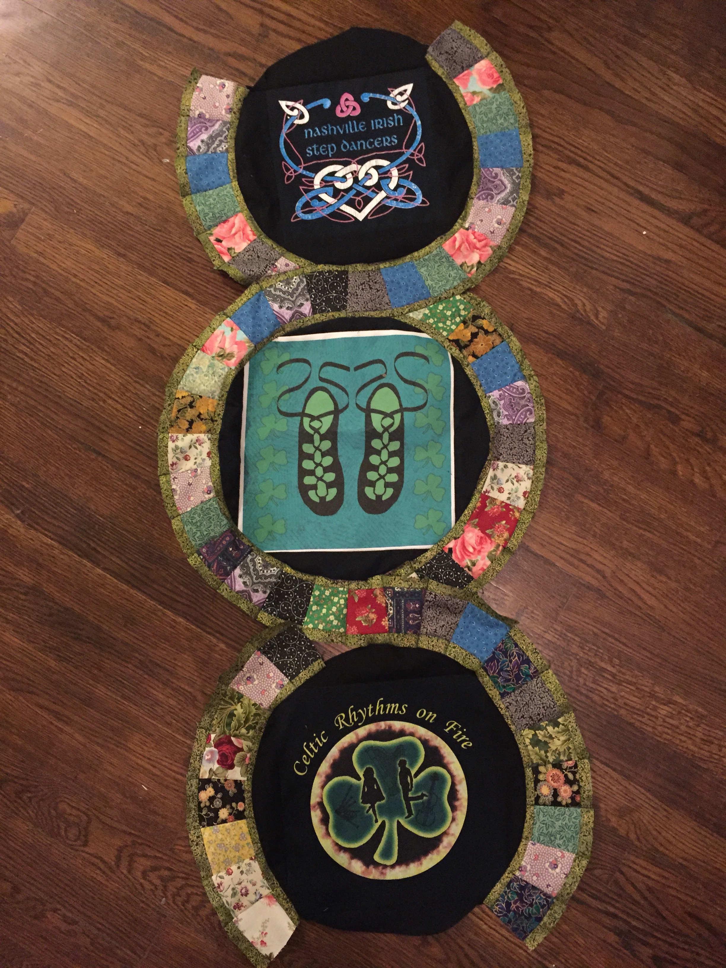 I’ve been challenged by a commission to do a t-shirt quilt. The shirts are from Irish dance competitions. I’m trying to branch out of a grid. I thought Celtic knots. I’m putting lots of sketching time into this. I thought I had it till I took a closer look at my husband’s bookmarker. Now, I’m thinking a twist on the Double Wedding Ring.